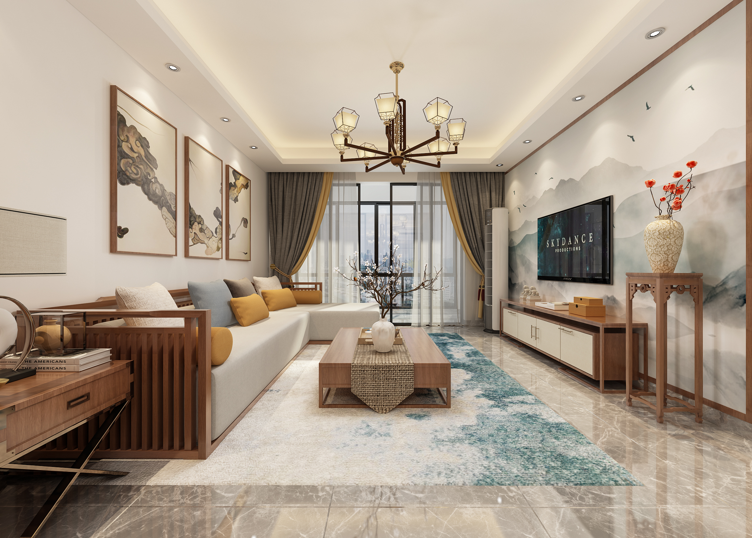 柳州红星天铂_红星天铂05平米户型装修效果图_新中式风格