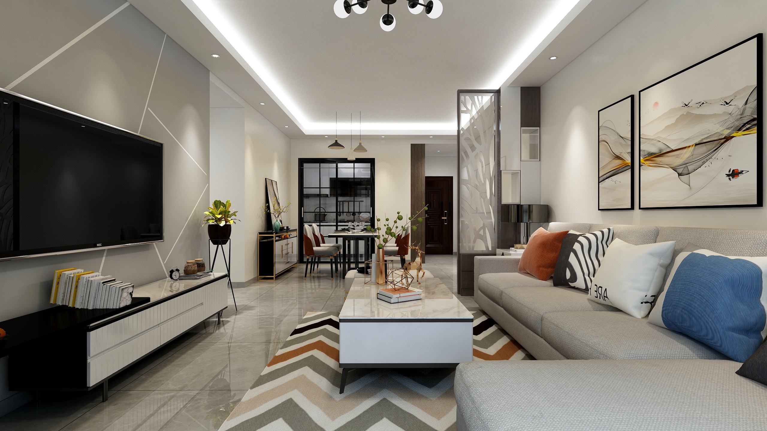 柳州红星天铂装修_红星天铂94平米户型设计效果图_现代风格