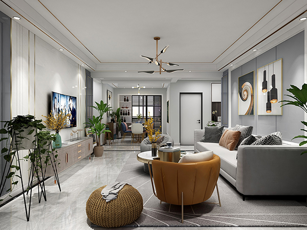 保山紫檀水岸现代简约风格装修设计案例104平米实景效果图